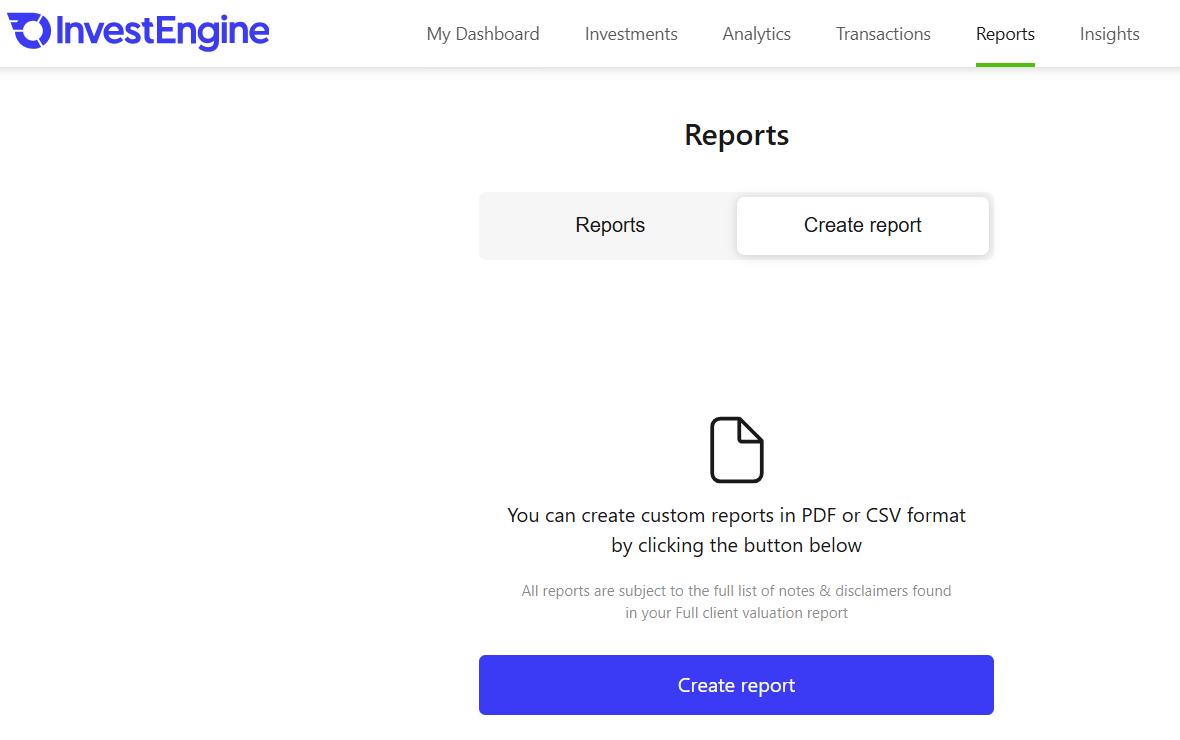 You can create custom reports directly from your InvestEngine online account and download them in PDF or CSV format.